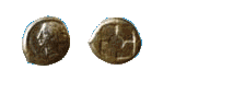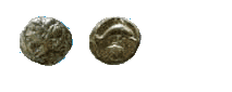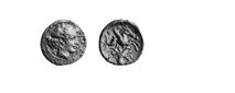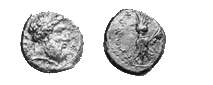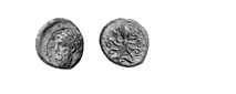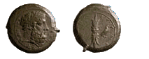 AE ... 1 hd Zeus laur /3 dolphins around scallop-shell [C 76]