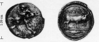 Obv. female standing, sacrificing with patera at altar, and holding uncertain filleted object (temple key?)
