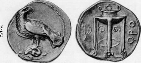 420-390 BC 7.85 eagle l. hd rev on ram hd / tripod, QPO-branch berry=olive-spray Frankfurt 338