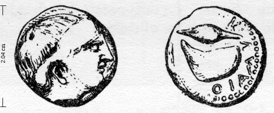 Rev. mussel-shell, grain of barley above, KVMAION