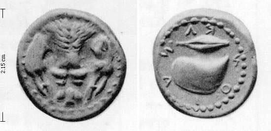 2. skin lion's hd between 2 boars' hds/mussel-shell, barley-corn above 7.04 SNG BMC 7
