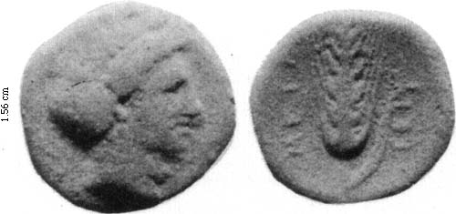AE16 of Metapontion, 350-340 BC ca