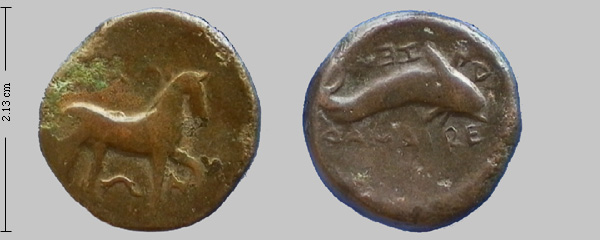 Obv. horse l foreleg raised.