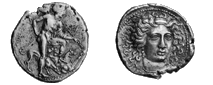 AR litra 0.63- 0.83 5 hd facing nymph within wreath/hound, Gorgon above