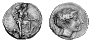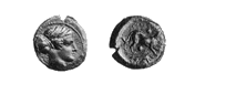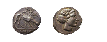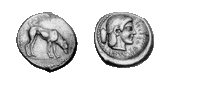 AR didrachm 7.38- 8.60 28 hound, 3 corn-ears behind/hd nymph [J 1 p4 A-B, D-E]