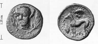 Obv. hd nymph (Aegesta) facing within laurel wreath