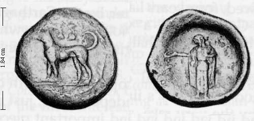 Rev. nymph Segesta standing, holding patera in outstreched hand; (SE)GEST-AIB
