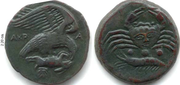 Rev. crab, the shell of which presents a human face, 3 pellets and crayfish below