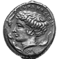 Die-coupling of "Die Tetradrachmenprägung von Syrakus in der Periode der Signierende Künstler" by Lauri O. Th. Tudeer (1913) in ZfN 30 pp 1-292 V: Vorderseite (Obverse) on the horizontal axes, R: Rückseite (Reverse) on the vertical axes Linked die-couples (either by obverse or by reverse) are indicated by colors. Tudeer numbers in the data base are indicated by blue borders and are clickable. The dates of the periods are by Tudeer and may differ from modern dates. Hairstyles of Arethusa are indicated by letters: