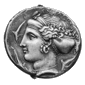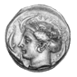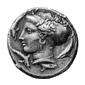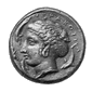 Die-coupling of "Die Tetradrachmenprägung von Syrakus in der Periode der Signierende Künstler" by Lauri O. Th. Tudeer (1913) in ZfN 30 pp 1-292 V: Vorderseite (Obverse) on the horizontal axes, R: Rückseite (Reverse) on the vertical axes Linked die-couples (either by obverse or by reverse) are indicated by colors. Tudeer numbers in the data base are indicated by blue borders and are clickable. The dates of the periods are by Tudeer and may differ from modern dates. Hairstyles of Arethusa are indicated by letters: