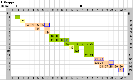Die-coupling of "Die Münzen von Syrakus" by Erich Boehringer (1929) V: Vorderseite (Obverse) on the horizontal axes, R: Rückseite (Reverse) on the vertical axes Linked die-couples (either by obverse or by reverse) are indicated by colors. Boehringer numbers in the data base are indicated by blue borders and are clickable.