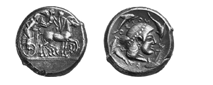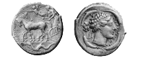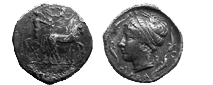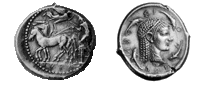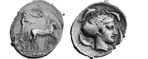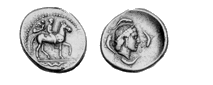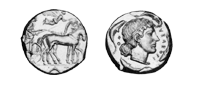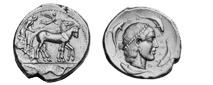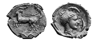 AR didrachm 8.22- 8.80 35 rider 2 horses/hd Arethusa (hair turned) [B 96-101]