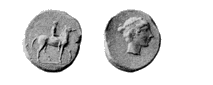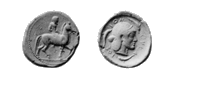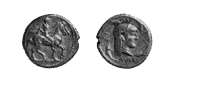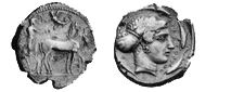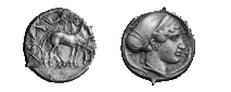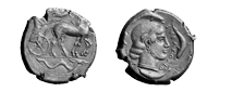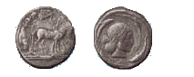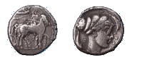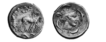 AR didrachm 8.02- 8.63 55 rider 2 horses/hd Arethusa (mainly long hair ) [B 50- 53]