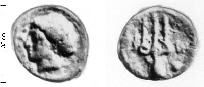 Rev. trident ornamented, in field left two palmate branches, at the right W and pellet