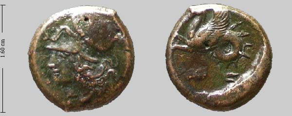 Obv. head Athena wearing Corinthian helmet, SURA SWSIA