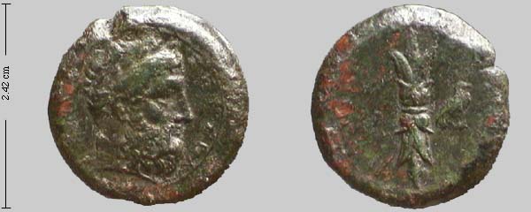 Calciati 72 15.28 g munthandel G. Henzen, list February 1995 no. 20 1st exemplar 2nd exemplar 3rd exemplar Calc. 70 Calc. 71 Rev. grain of corn in field r. Calc. 72 Rev. eagle in field r. Calc. 73 Obv. border of large dots. Hemilitron [CALCIATI, 1995] Hemidrachm [SNG America Part 5, 1988]