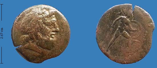 Obv. head of Zeus, thunderbolt behind