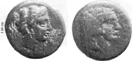 Obv. hd female with hair tied, crescent below chin