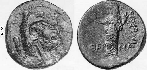 Rev. female standing with cornucopiae, QERMA IMERAIWN