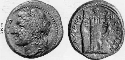 Rev. lyre, bunch of grapes above, TAUROM-ENITAN