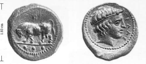 Calciati 15 2.85 g Numismatica Ars Classica AG, Auction 18 (2000) no. 88 Jenkins 530 C 7-10 bull l. Group I hair loose C 12, 14-15 bull l. Group II diadem C 12, 14-15 C 15 C 17-20, 23-25, 36-39 bull r. Group III hair floating C 37 C 28, 30-32, 34, 35 bull l. C 40-43, 45-52 bull r. Group IV long smooth wavy hair C 44 bull l. C 53-54 bull l. Group V barbarous imitations