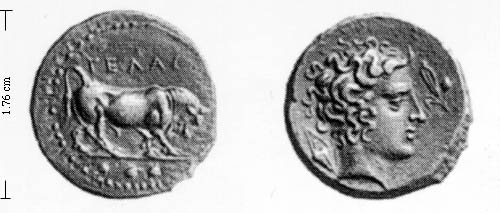 Calciati 37 3.87 g Numismatica Ars Classica AG, Auction 18 (2000) no. 86 Jenkins 505 C 7-10 bull l. Group I hair loose C 12, 14-15 bull l. Group II diadem C 12, 14-15 C 15 C 17-20, 23-25, 36-39 bull r. Group III hair floating C 37 C 28, 30-32, 34, 35 bull l. C 40-43, 45-52 bull r. Group IV long smooth wavy hair C 44 bull l. C 53-54 bull l. Group V barbarous imitations