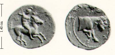 Obv. horseman with helmet and spear