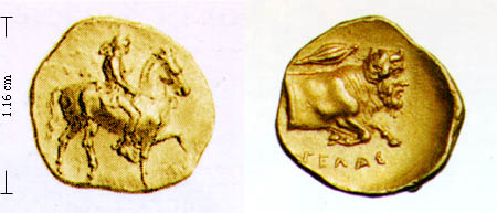 Obv. horseman with Phrygian helmet and spear