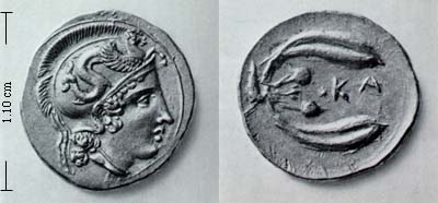 Obv. head Athena wearing Attic helmet decorated with hippocamp