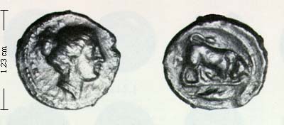 Obv. head female; text KAMAPINAION Rev. bull butting; in ex. corn-ear