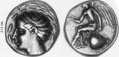 Obv. hd. nymph Terina within olive-wreath