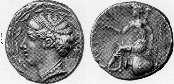 Obv. hd. nymph Terina within olive-wreath