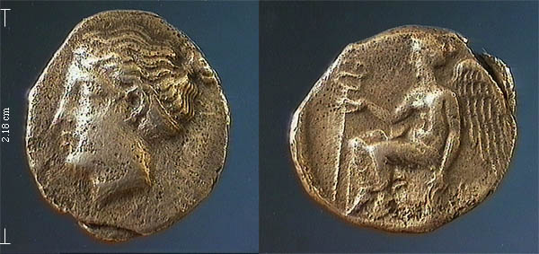 Rev. Nike seated on square cippus, caduceus in r. hand, l. hand resting on cippus