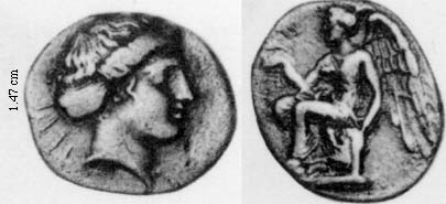 Obv. hd. nymph Terina r, hair in sphendone, TEPI
