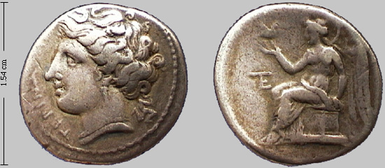 H-J 114 2.71 g NAC K 1103 /seated l., star, on cippus TEPI?