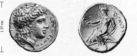 Rev. Taras on dolphin, holding trident and small dolphin, in field r. T (turned) and K, TARAS