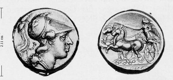 Obv. hd Athena / Minerva wearing Corinthian helmet