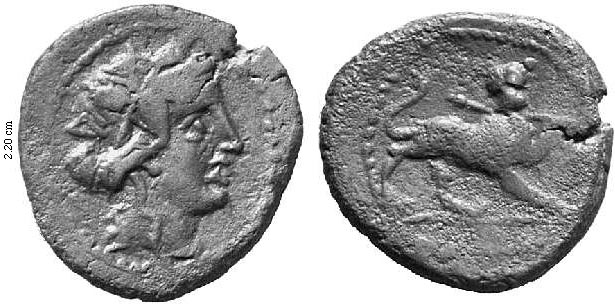 HNI 489var 6.68 g Frank Sternberg AG > Auction 23 2000 lot 409 Estimate 120 CHF, realized 220 CHF (approx. 122 USD) type HNI 489var Imperatoren der späten Republik Marcus Antonius, † 30 v.Chr. AE 20-22mm. Anonyme Prägung für M. Antonius in Capua (?). Haupt des Dionysos-Bacchus mit Efeukranz n.r. Rv. Panther einen Thyrsos haltend n.r. SNG Cop. 342; BMC (Italy) 84,23. 6,68g. Sehr schön