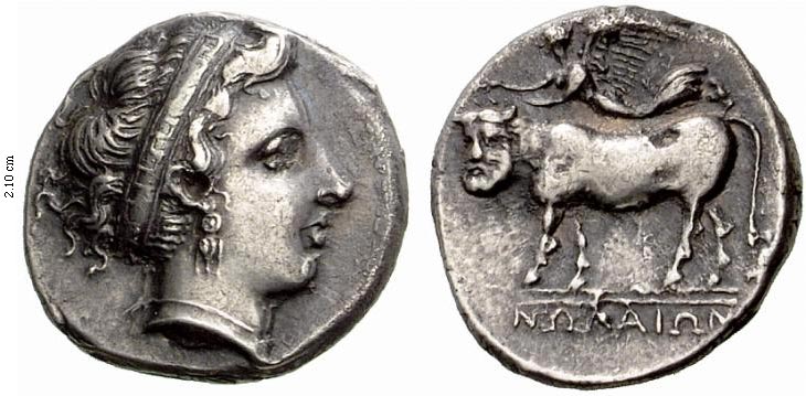 Rev. man-headed bull, crowned by Nike. in ex. NΩΛAIΩN