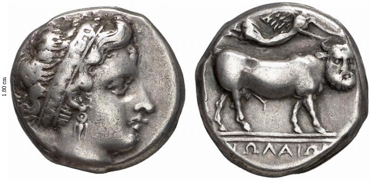 Rev. man-headed bull, crowned by Nike. in ex. NΩΛAIΩN
