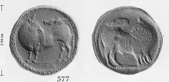 Rev. incuse: bull head reverted, cicada or locust above bull