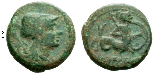 Obv. hd Athena r wearing Corinthian helmet (sometimes decorated with griffin)