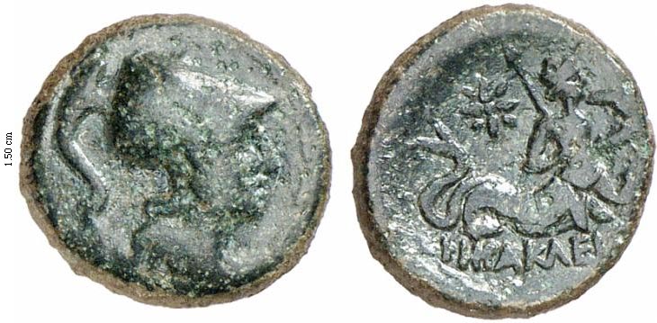 Obv. hd Athena r wearing Corinthian helmet (sometimes decorated with griffin)