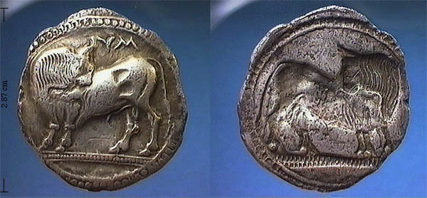 7.4 g private collection B 1st specimen 2nd specimen 2 coins out of 88 have Obv. bull to the right Cop 1391 5.98 plated Mun 1158 6.74