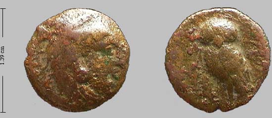 Mangieri 186 2.27 g Munthandel G. Henzen, June 1996 no. f 1st specimen 2nd specimen Mangieri (1986) 425 BC - 1C BC Rutter (1977) 425 -390 BC Di Bello (1977) 390 BC - classification according to Rutter AE 16 3.70- 4.81 6 hd Heracles /owl [II] AE 15-18 2.68- 4.74 10 hd Heracles /owl within wreath [III, M 188-189] AE 15 1.75- 3.43 24 hd Heracles /owl [IV, M 186-187] AE 11 1.50 1 hd Heracles /owl [V]