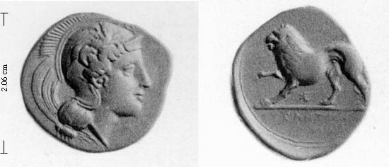 Obv. hd Athena wearing Attic helmet decorated with a griffin