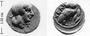 Obv. hd nymph, hear in krobylos, T under chin